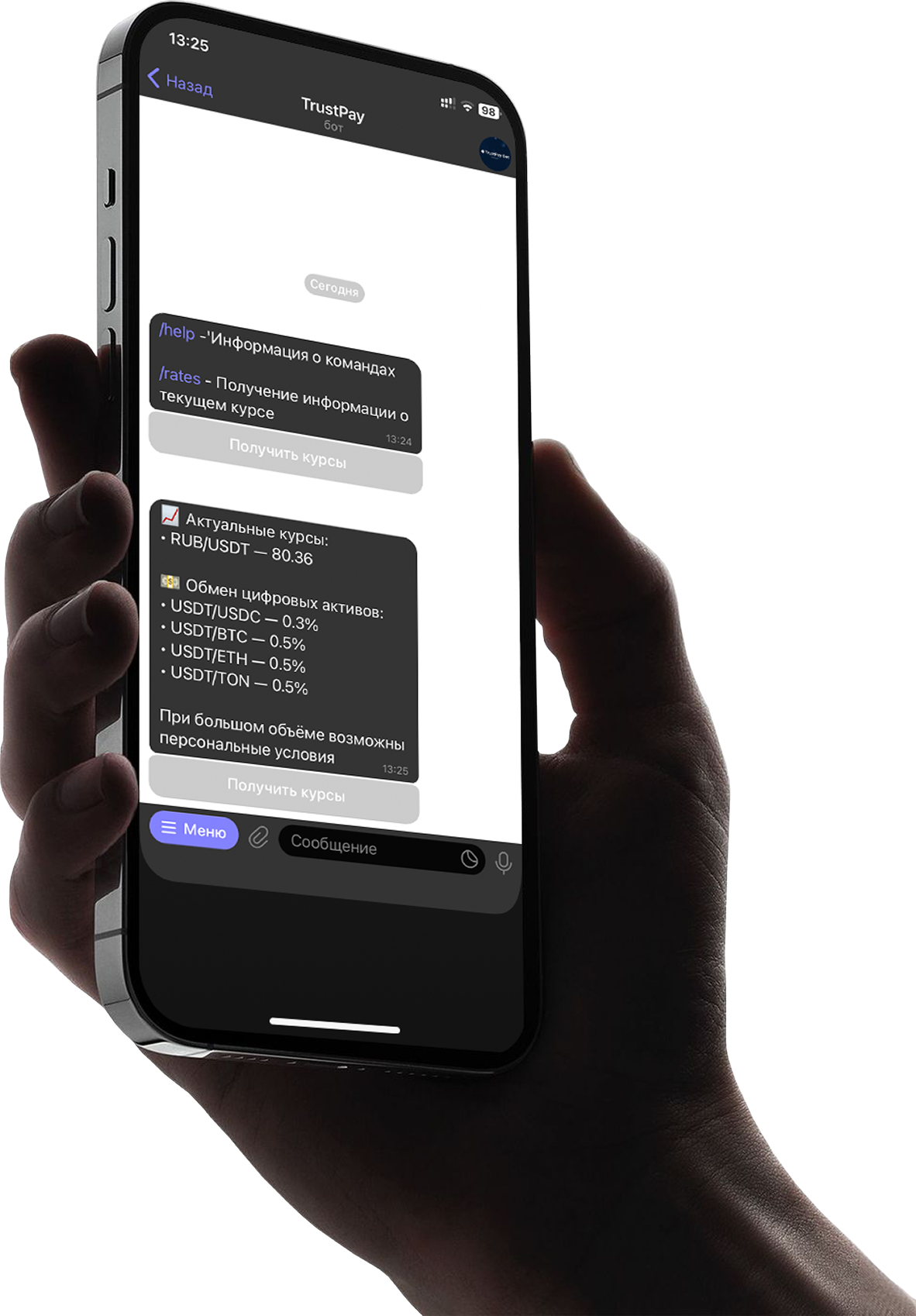 Осуществляем обмен или перевод USDT/криптовалюты по согласованным условиям — быстро и безопасно.