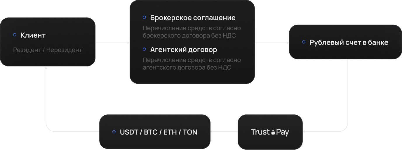 Мы осуществляем расчеты в удобном для вас формате — будь то банковский перевод, криптовалюты или другой способ.